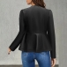 Fashion Front Zipper Long Sleeve Ruffle Hemline Artificial Leather PU Jacket