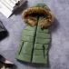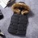 Fashion Front Zipper Plush Spliced Hooded Warm Quilted Vest
