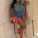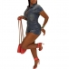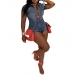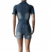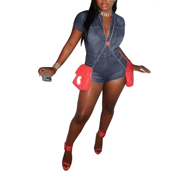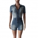 Fashion Front Zipper Stand Collar Short Sleeve Slim-fit Old-washed Denim Romper