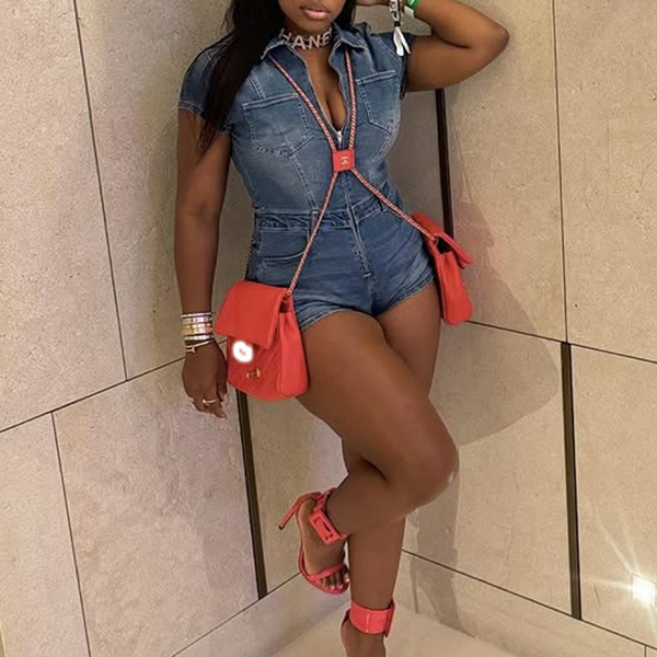 This Denim Romper is a stylish and trendy piece that combines modern design elements with a touch of vintage charm. The front zipper detailing adds a contemporary and edgy touch to the romper, creating a sleek and modern look. Pair it with sneakers or sandals for a laid-back and casual look.