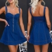 Fashion Front Zipper Sweatheart Neckline Cami Denim Dress