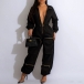 Fashion Front Zipper V-neck Long Sleeve Jumpsuit
