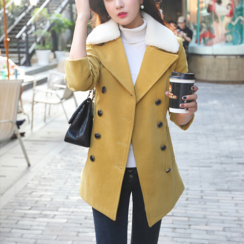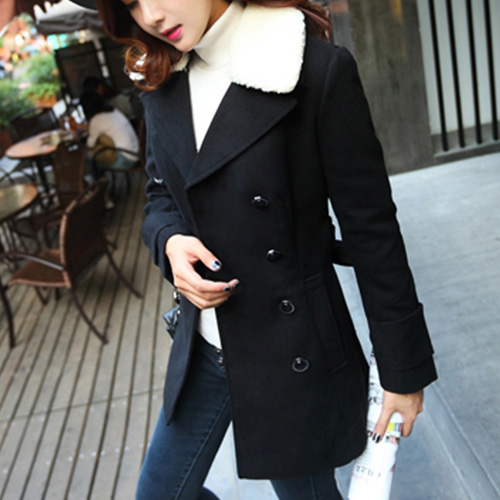This coat will keep you warm and show your slender figure and fashion sense simultaneously. It features warm and soft fur collar.