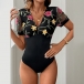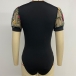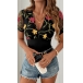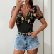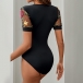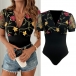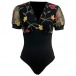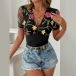 Fashion Gauze Spliced Floral Embroidery V-neck Short Sleeve Bodysuit