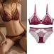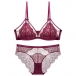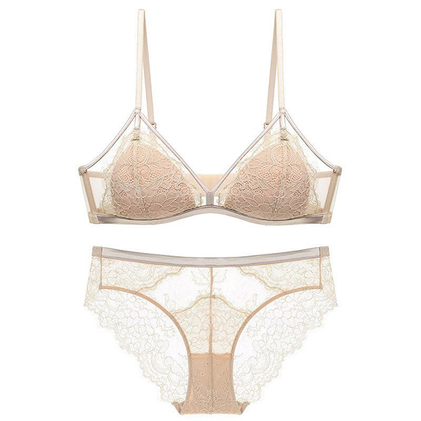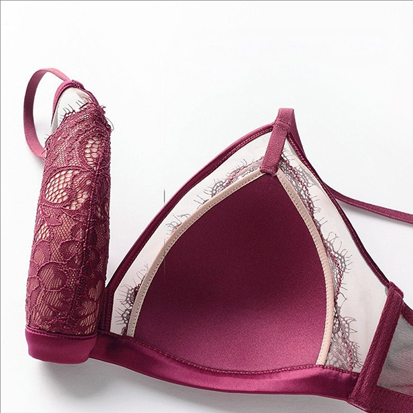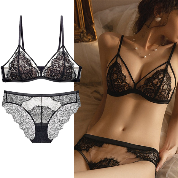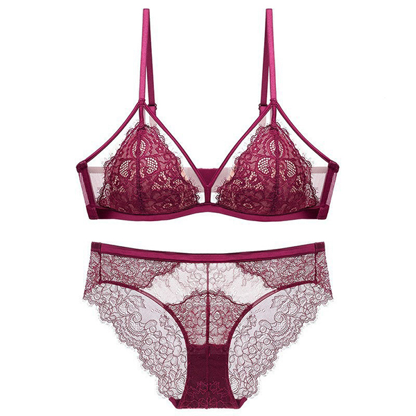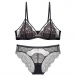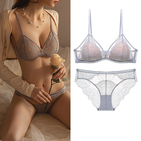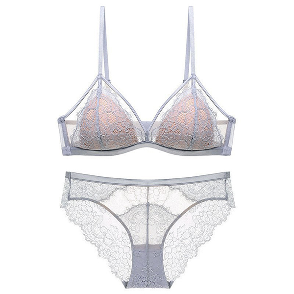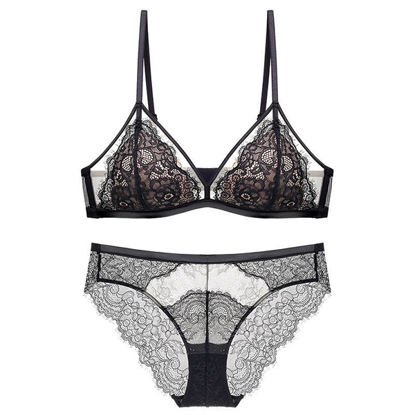 Fashion Gauze Spliced Floral Lace Semi-through Two-piece Lingerie Set