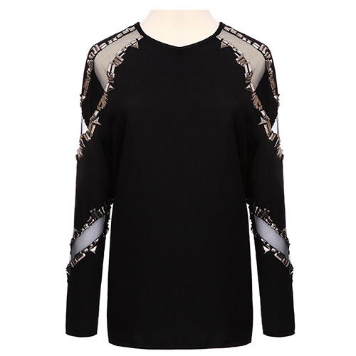 This long sleeve t-shirt perfectly blends stylish and charming style. Features gauze spliced