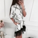 Fashion Gauze Spliced Hem Long Sleeve Printed Shirt Dress