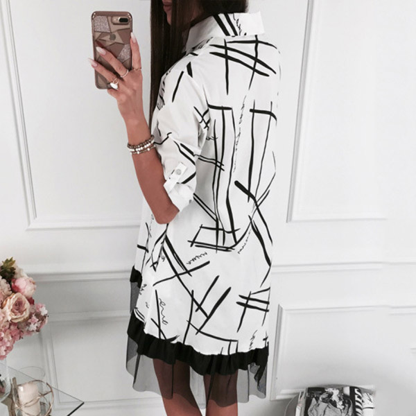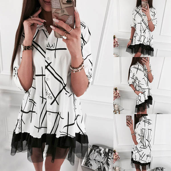 Looking for a versatile dress both for your workdays and weekend out? Then make your eyes focused on this shirt dress. Its chic printed details and gauze spliced hem design make this piece full of chic and attractive vibes. You just need to match with your favourite heels,then you can look beautiful enough.