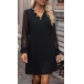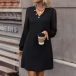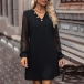 Fashion Gauze Spliced Long Sleeve Buttoned V-neck Loose Dress
