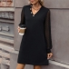 Featuring a solid color account, gauze spliced long sleeve, and buttoned decoration along the V-neck, this dress is a perfect addition to your wardrobe. Perfect for simply going out or a casual gathering, this dress is sure to make a statement.