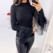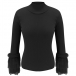Fashion Gauze Spliced Long Sleeve Mock Neck Slim Fit Top