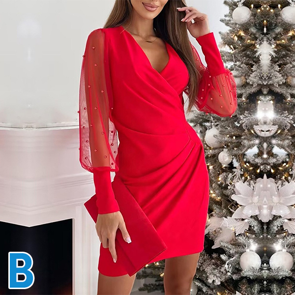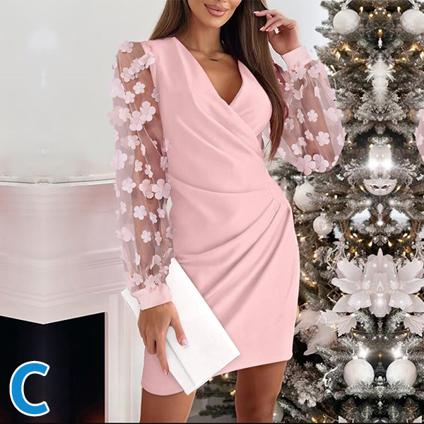Fashion Gauze Spliced Long Sleeve V-neck Bodycon Dress