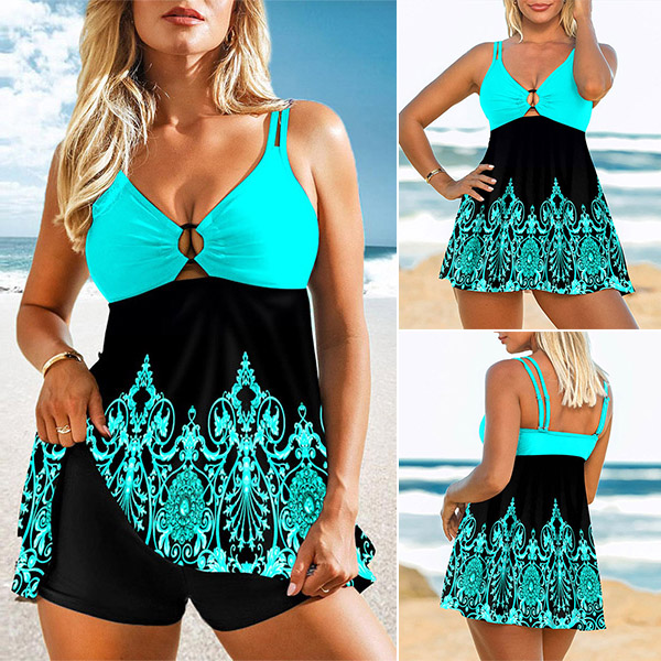 Don't like too sexy swimsuit set? Then might we suggest you this set? The gauze spliced and printed details enrich the design style,and its breathable,quick-dry material can give you a long-lasting comfort. Just enjoy your swimming time with this swimsuit set!