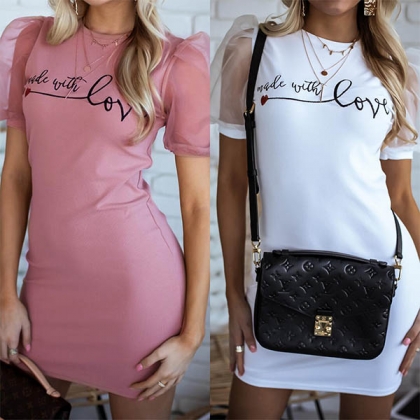 On some rushed mornings when you have no time to think about what to wear for your busy routine,then you can have a try this dress. The gauze spliced puff sleeve and letters print details make this piece full of style and charm. Simply need to match with your favourite shoes,then you can be ready to go out!