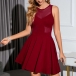 This dress features a round neck, sleeveless, bodice and a pleated skirt! The gauze splicing adds a touch of texture and interest to the dress, perfect for adding a unique flair to your wardrobe.