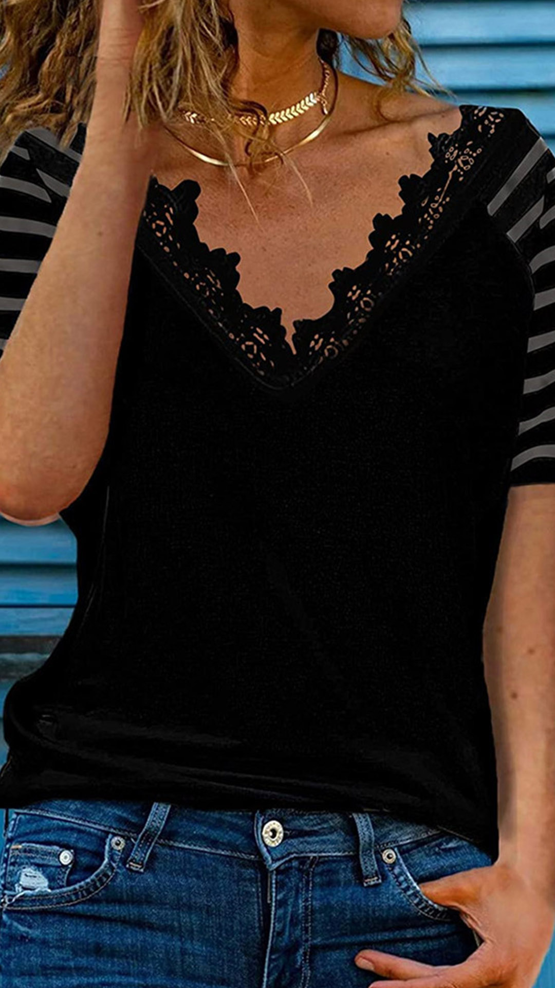 This t-shirt that combines of cozy,stylish vibes is worth to arouse your attention. Solid color style,the v-neck and gauze spliced short sleeve design will lend you a dash of flirty vibes. Crafted from soft and breathable fabric,with short sleeve and a loose silhouette,this piece can offer you different matching styles.