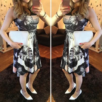 Inject a dose of romance to your ensemble when you don this dress. Features chic printed pattern,with sleeveless,
