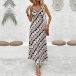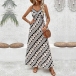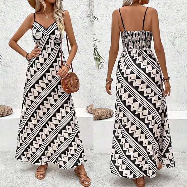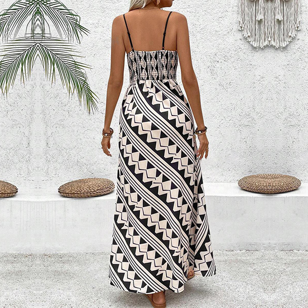 Fashion Geometric Printed V-neck Smocked Backless Maxi Dress