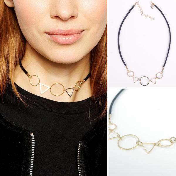 Embellish your neck with this choker necklace. Its geometric shaped pendant like triangle and circle makes it look