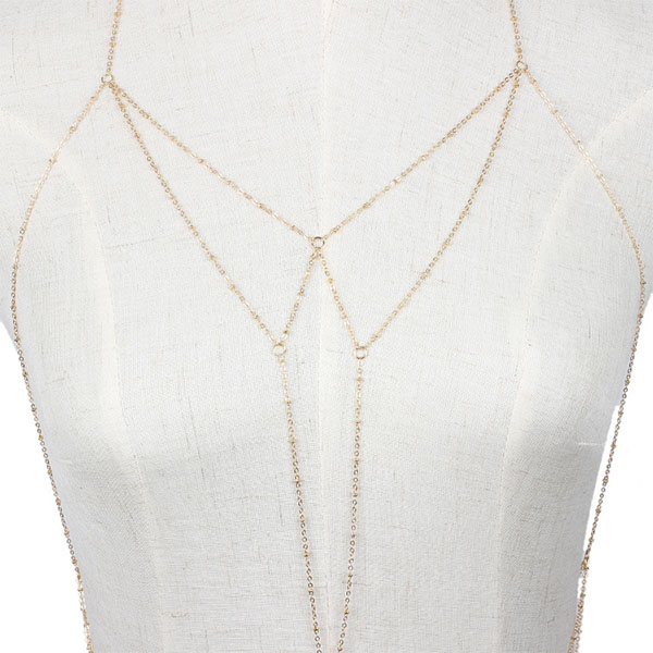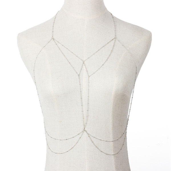 This multi-layer tassel body chain has two classic colors:gold color and silver color. When you wearing some sexy bikini,