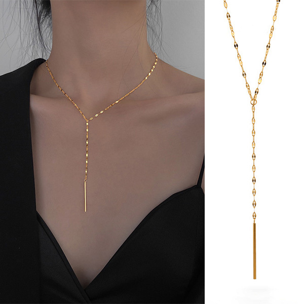It is a good chance to enrich your overall dress up and boost your charm with the help of this necklace. Boasts a classic yet stylish gold tone,decorated with a long tassel pendant,this stylish necklace is worth to arouse your attention.
