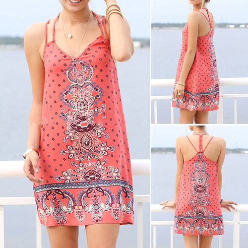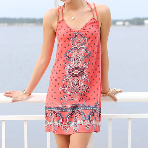 Fashion Graphic Print Strappy V-Neck A-Line Cami Dress