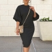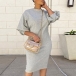 Fashion Half Lantern Sleeve Round Neck Solid Color Sweatshirt Dress