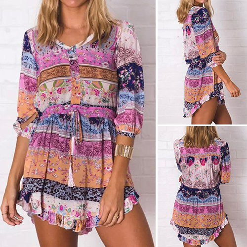 Enjoy your wonderful summer days with this dress. Its chic and vibrant floral print details make this dress look more