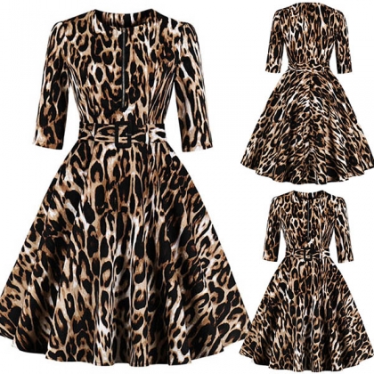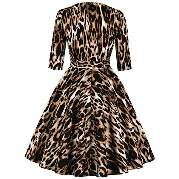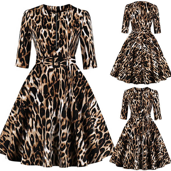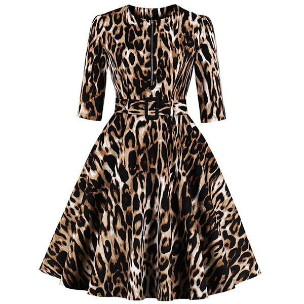 If you are looking for a proper dress for your afternoon-tea time,then make your eyes focused on this piece. The leopard printed details make this piece look so eye-catching. Finished with half sleeve,round neck and waistband design,this dress definitely can make you look effortless charming and beautiful.