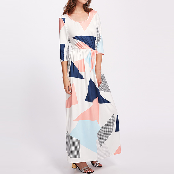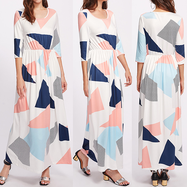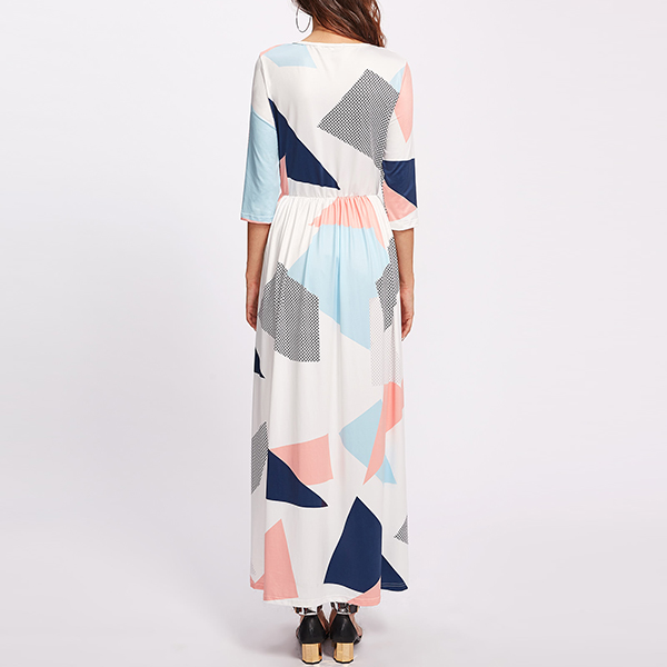 Designed with chic and fashionable rhombus printed pattern, the half sleeve,round neck,high waist and maxi length design
