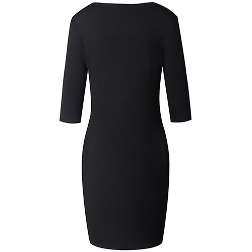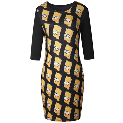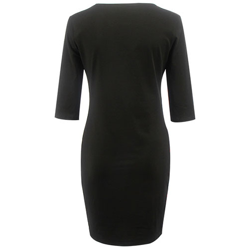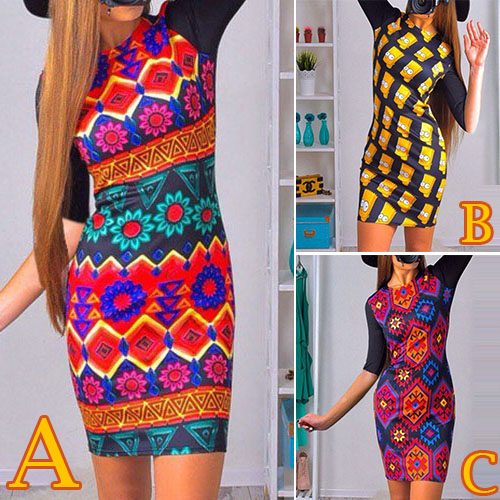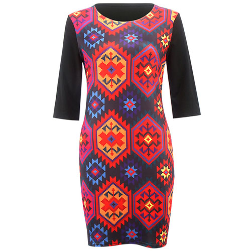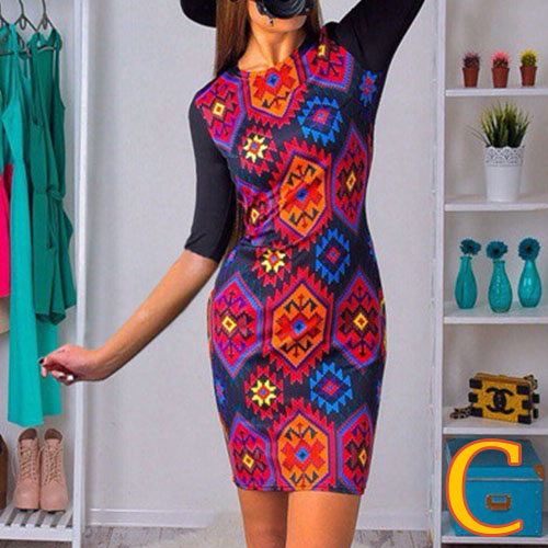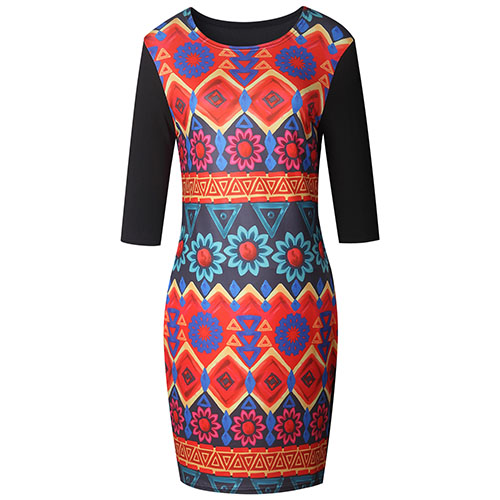 Features chic and eye-catching printed pattern,with half sleeve,round neck and a fit silhouette,this dress is a perfect