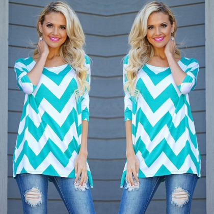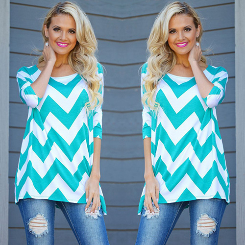 Wave-stripe style,complete with a round neck and half sleeve design,this t-shirt would be