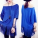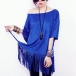 Fashion Half Sleeve Tassels Hem Solid Color Loose Tops