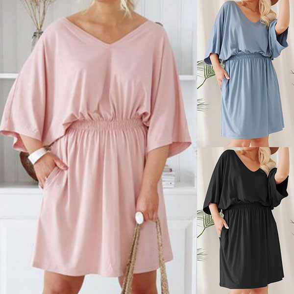 On your lazy days or some rushed mornings,this easy-to-wear dress can easily strike your mind. It comes with a solid color,finished with half sleeve,v-neck and an elastic waist,this piece not only can showcase your waistline,but also can ensure you a comfortable day. It is a perfect addition for a laid-back yet fashionable daily look.