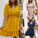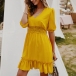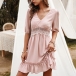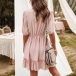 You have no longer to worry about what to wear for your night dating and weekend out when you have this dress in your team. Solid color style,finished with half sleeve,v-neck,ruffle hem and lace spliced high waist design,this dress definitely can express your feminine appeal.