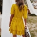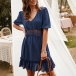 Fashion Half Sleeve V-neck Ruffle Hem Lace Spliced Dress