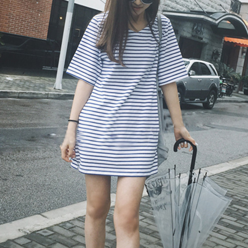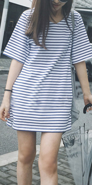 dress in her closet! Striped style,with v-neck and half sleeve design. Paired it