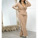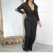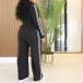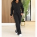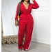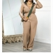 This jumpsuit features functional half-zip styling with flattering V-neck design and comfortable elastic waist for contemporary casual elegance. Pair with sneakers and casual accessories for sophisticated sporty appeal.