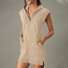 Fashion Half-zip V-neck Sleeveless Patch Pockets Mini Dress