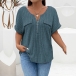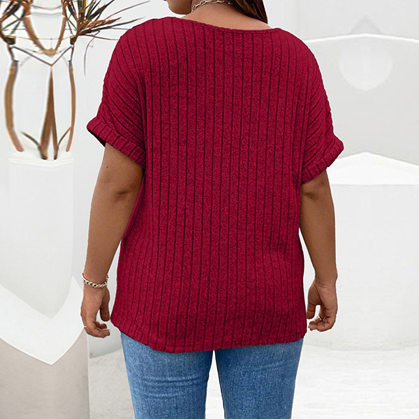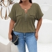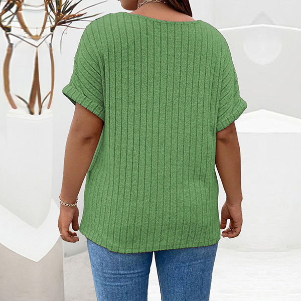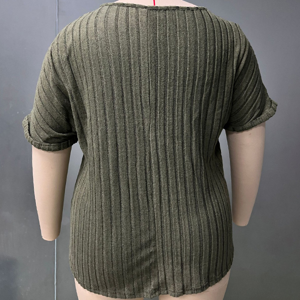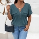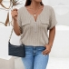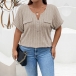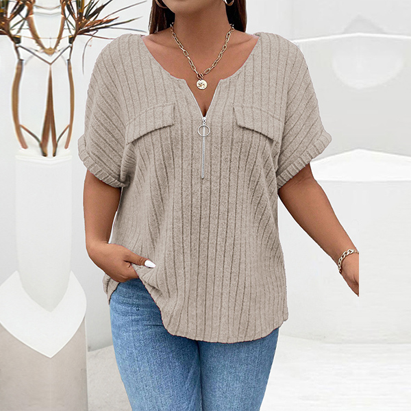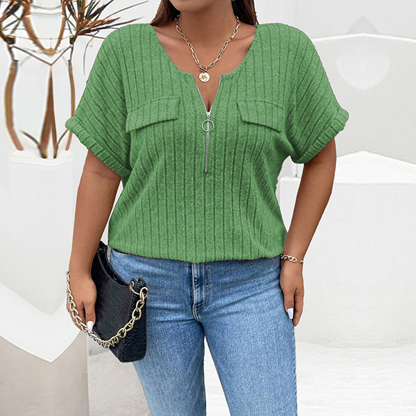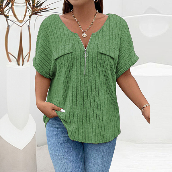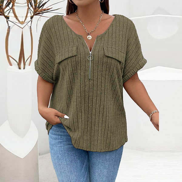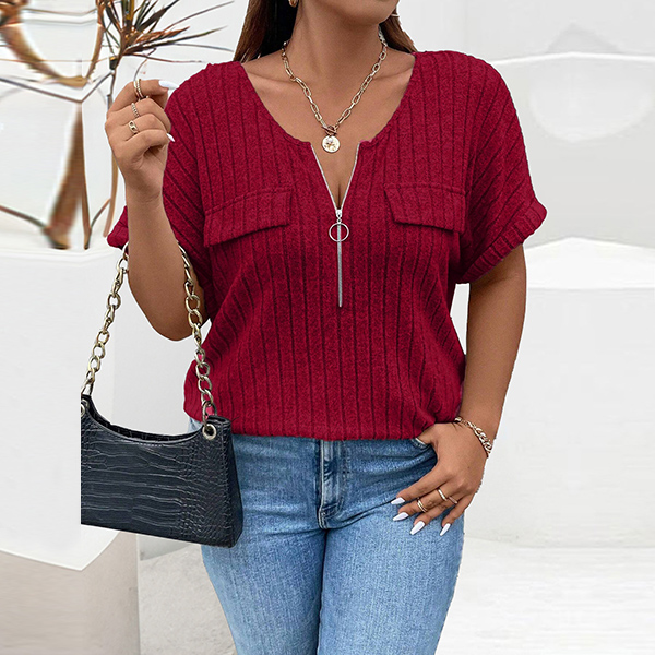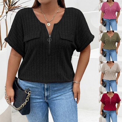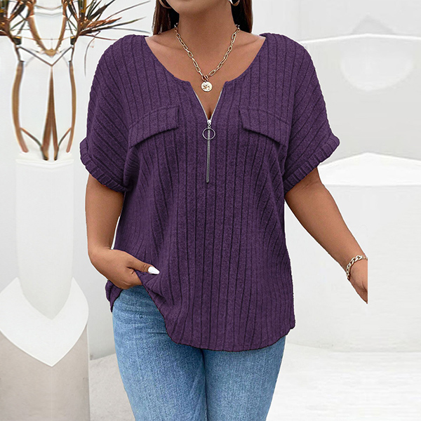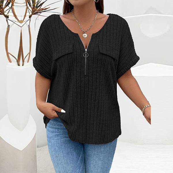 Fashion Half-zipper Crew Neck Short Sleeve Ribbed Shirt