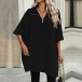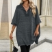 Fashion Half-zipper Lapel V-neck Batwing Short Sleeve Knitted Sweater