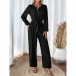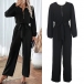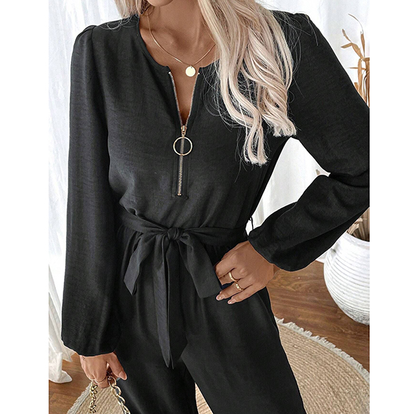 Fashion Half-zipper Long Sleeve Self-tie Straight-cut Jumpsuit