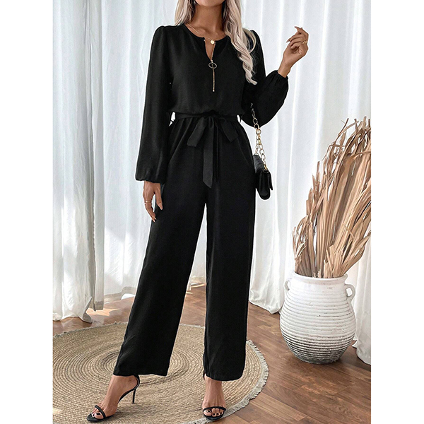 Elevate your style with this Jumpsuit. This sleek and modern jumpsuit features a practical half-zipper design and long sleeves, making it perfect for any occasion. Wanna have a try?