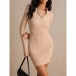 Fashion Half-zipper Neckline Long Sleeve Ribbed Bodycon Sweater Dress
