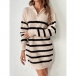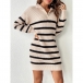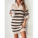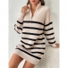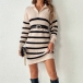 Fashion Half-zipper Neckline Long Sleeve Stripe Pattern Sweater Dress
