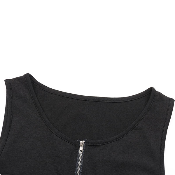 Fashion Half-zipper Round Neck Sleeveless Drawstring Waist Slit Mini Dress