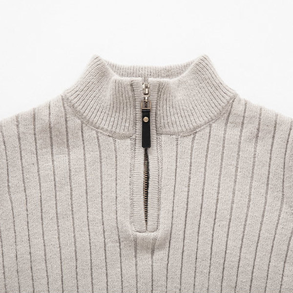 Fashion Half-zipper Stand Collar Long Sleeve Ribbed Shirt for Men