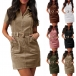 Fashion Half-zipper Stand Collar Short Sleeve Patch Pockets Bodycon Dress with Belt