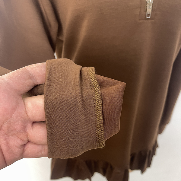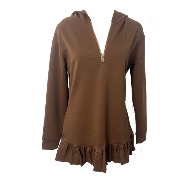 This sweatshirt features sporty half-zipper styling with flattering V-neck design and playful ruffle hemline for modern casual elegance. Perfect for casual occasions, sporty styling, or comfortable everyday coordination.