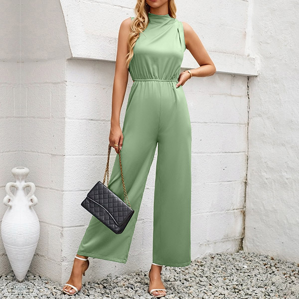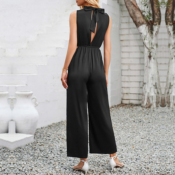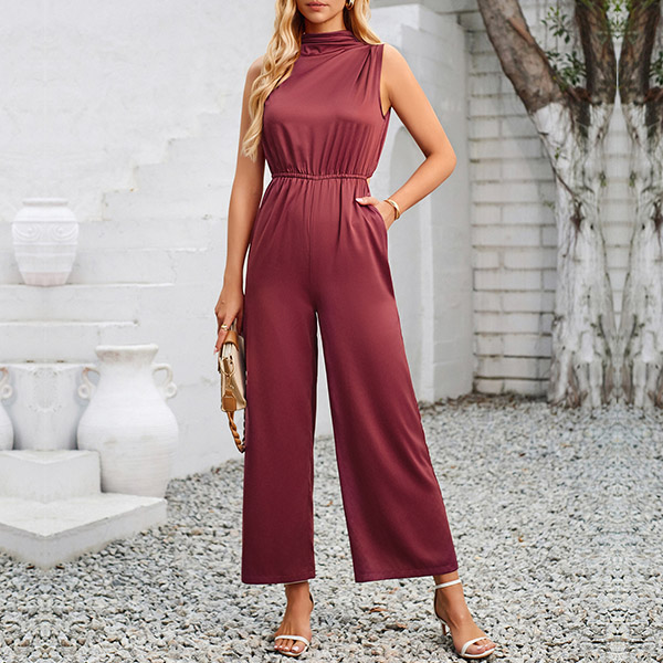 Fashion Halter Mock Neck Sleeveless Backless Straight-cut Jumpsuit